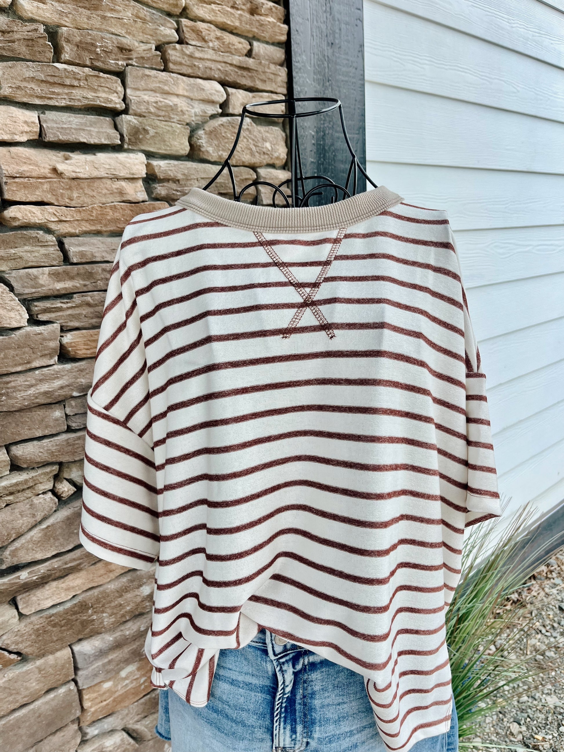 With its soft, cozy fabric and lively stripes, this tee adds a splash of joy to your everyday look. Whether you're out and about or just chilling, it’s the perfect playful pick for comfort and style.